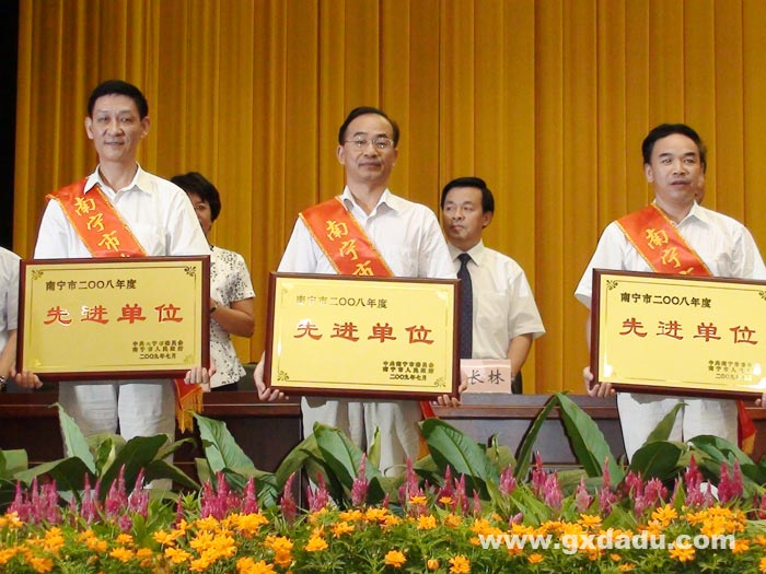 2009年7月31日上午,集团公司总裁李志雄、副总裁韦炳军参加南宁市经济工作先进表彰大会。集团公司荣获南宁市2008年度先进单位称号,集团公司总裁李志雄荣获南宁市劳动模范荣誉称号。
