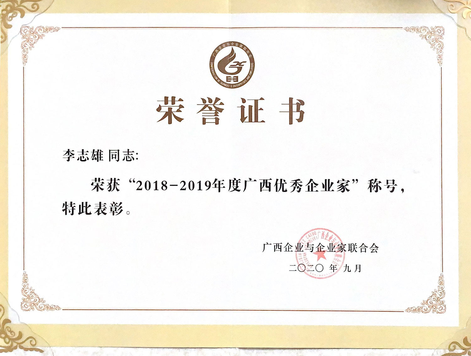 图片新闻 (集团公司·公司荣登2020广西制造业企业50强第45位、总经理李志雄荣获广西优秀企业家称号)