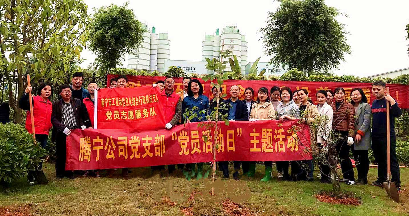 春回大地万物苏,植树添绿正当时。为深入贯彻落实习近平总书记“绿水青山就是金山银山”的绿色发展理念,切实加强生态环境保护建设,提升党员群众保护环境的意识,增强支部凝聚力。3月12日,在全国植树节来临之际,腾宁公司党支部组织党员和生产业务骨干,联合南宁市工业和信息化综合执法支队党员志愿服务队,共30多人在腾宁公司厂区开展植树节主题党日活动。