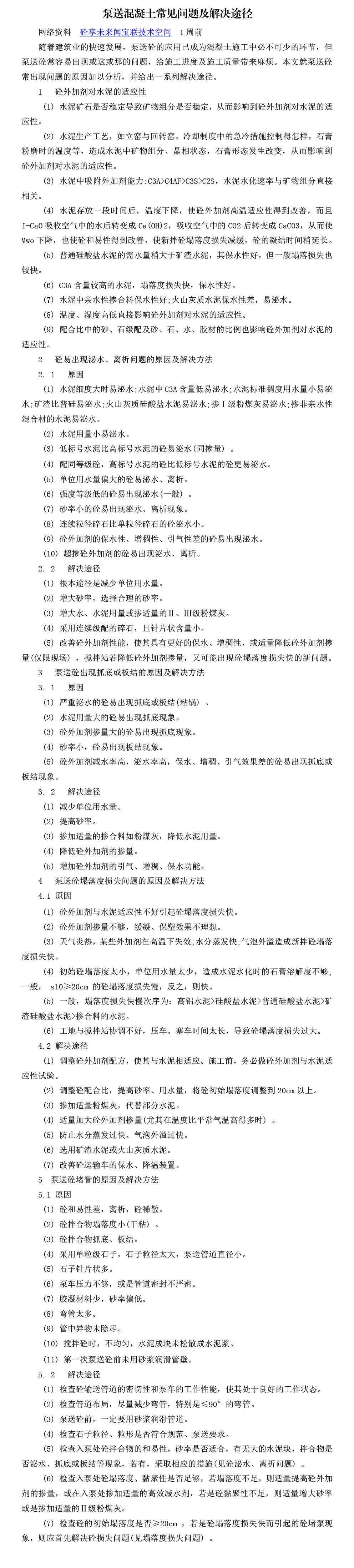 泵送混凝土常见问题及解决途径