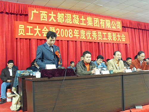 集团公司总裁李志雄在做主题为"解放思想,抓住机遇,克服困难,加快发展"的动员报告