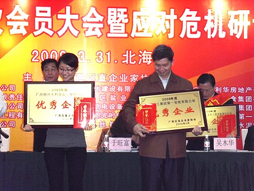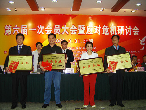 集团公司、柳州大都获2008年度“广西区直优秀企业”荣誉称号,集团公司副总裁杨仲英、韦炳军、柳州大都总经理周永专获“广西区直优秀企业家” 荣誉称号。