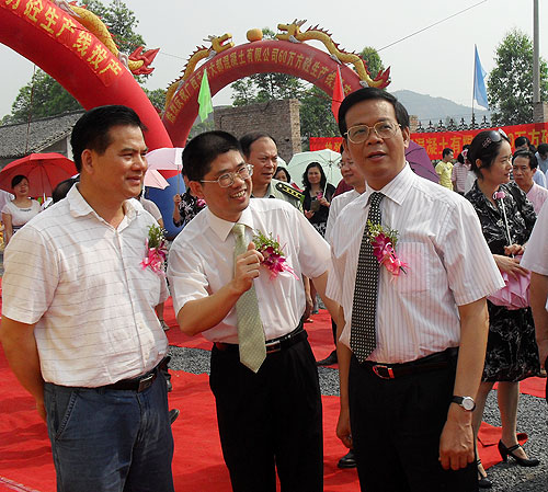 图片说明:玉州区书记蔡文(右一)玉州区茂林镇书记唐泽林(中)