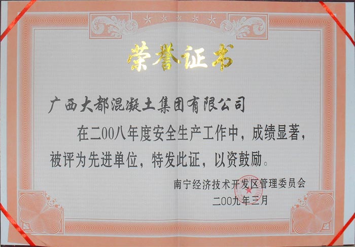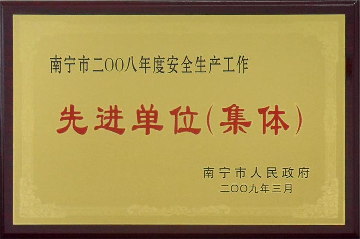 集团公司荣获2008年度经开区、南宁市安全生产工作先进单位奖