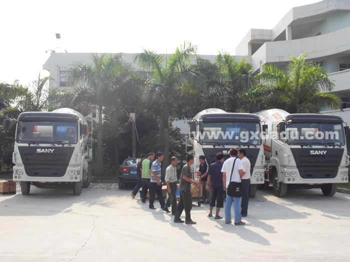 集团公司从三一重工订购的5辆搅拌车,1辆车载泵已到达公司本部。公司车队正组织相关人员进行验收,保证车辆以最好的状态投入配送中去。