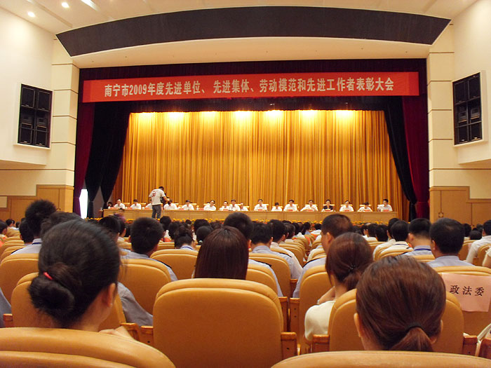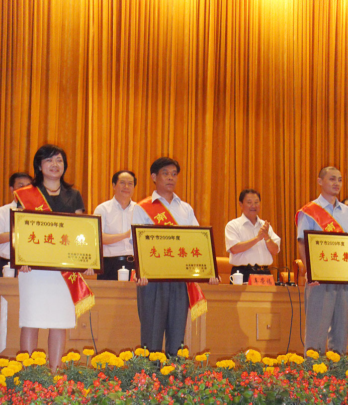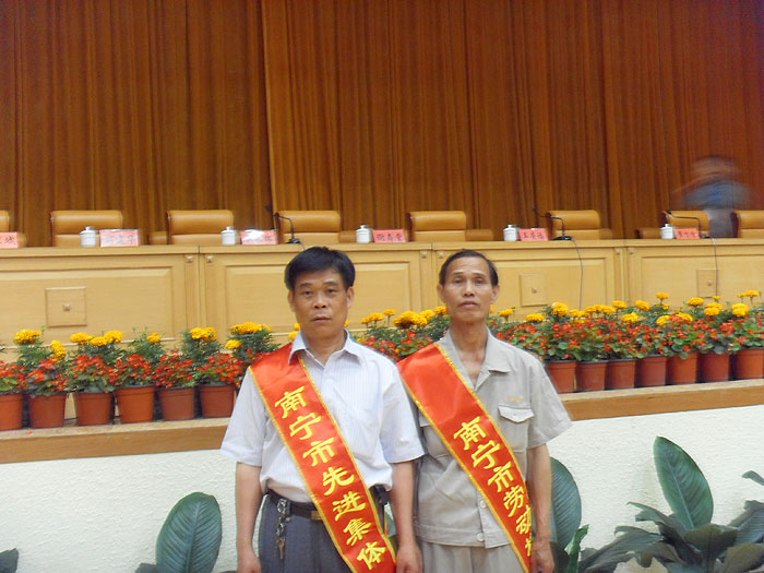5月18日下午,在南宁市政府会议中心召开的南宁市2009年度先进单位、先进集体、劳动模范和先进工作者表彰大会上,我集团公司车队搅拌车司机莫善正荣获“劳动模范”荣誉称号,材料部荣获“先进集体”荣誉称号。