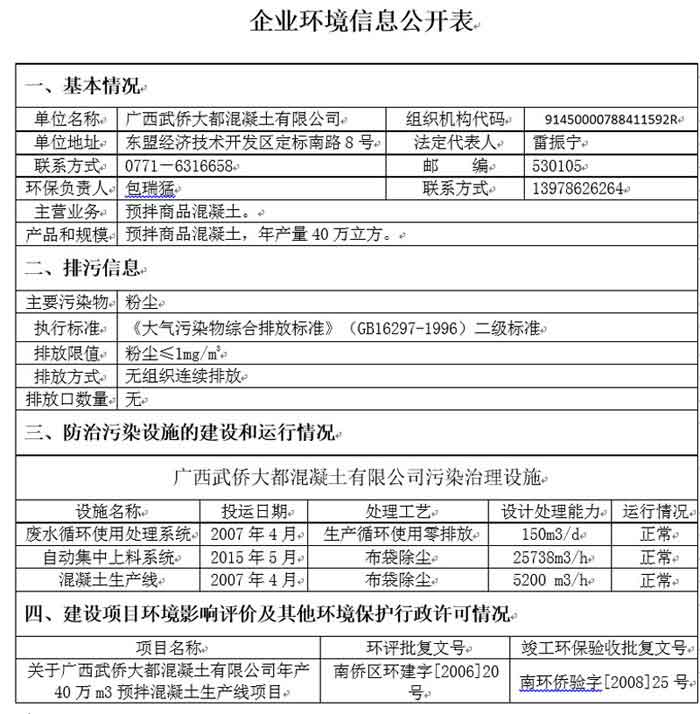 信息公告 (武侨公司·企业环境信息公开表)