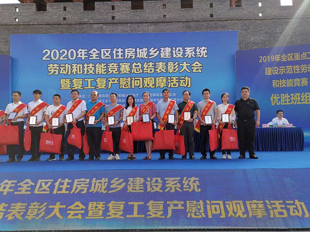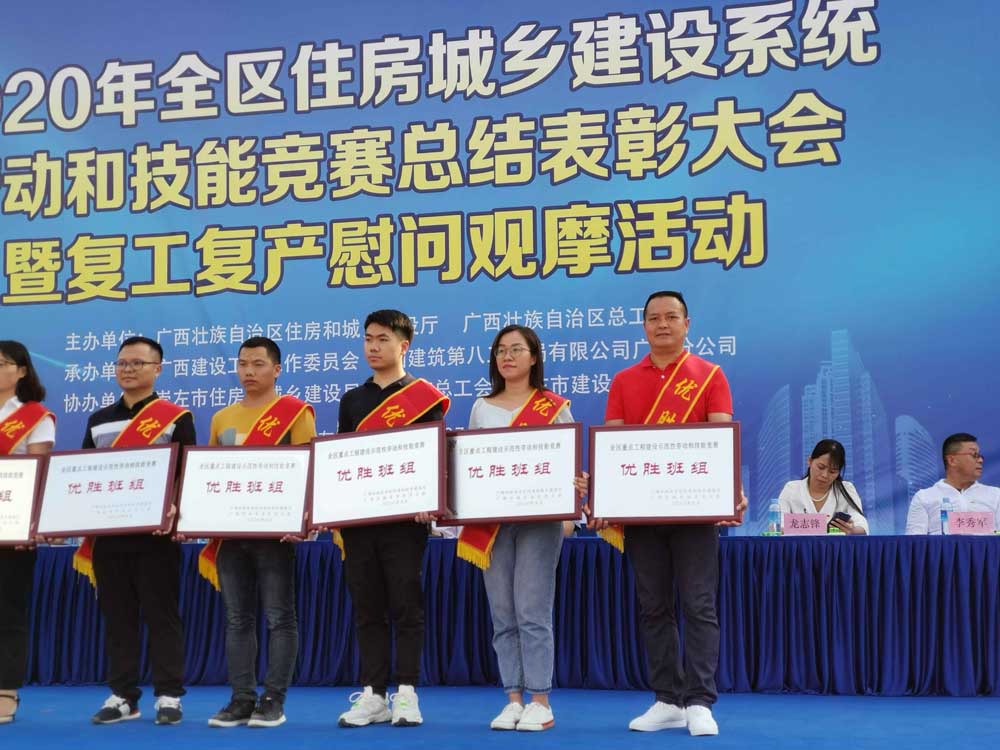 5月27日,2020年全区住房城乡建设系统劳动和技能竞赛总结表彰大会在崇左市召开,广西大都混凝土集团有限公司的1个泵管班组和1名先进个人获奖。