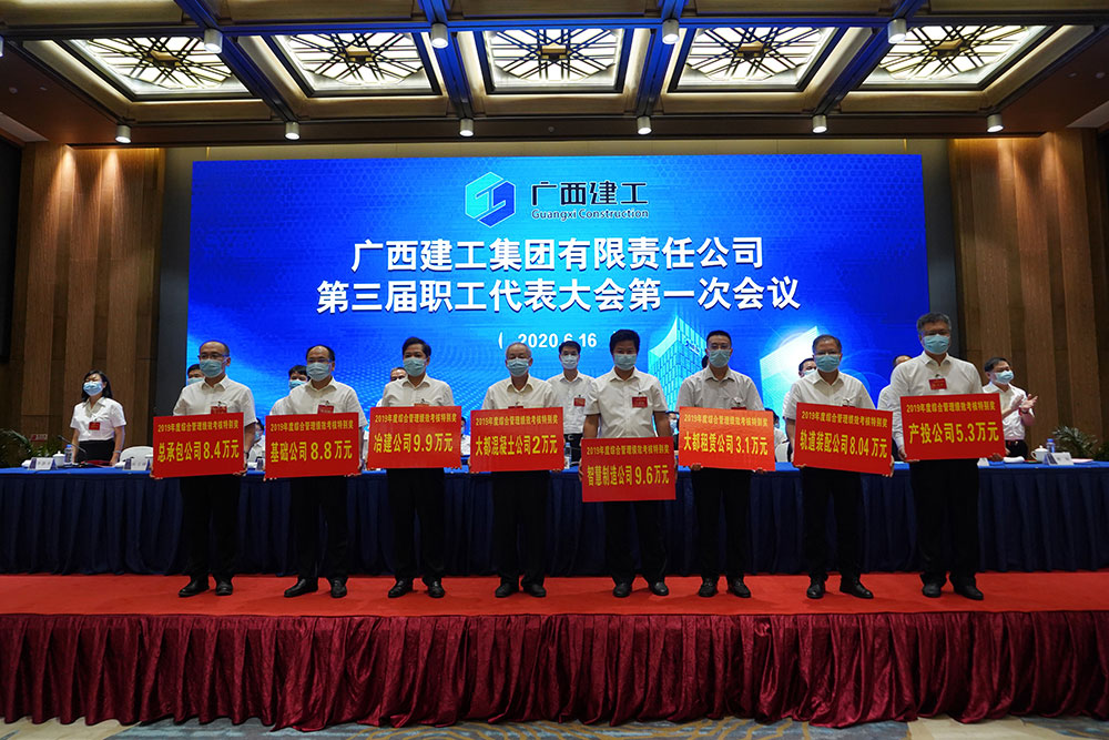 6月16日,广西建工集团有限责任公司第三届职工代表大会第一次会议在南宁市荔园维景国际大酒店召开,会议表彰了广西建工集团2019年度先进单位、综合管理绩效考核特别奖、优秀分公司、优秀管理部门等奖项,其中,集团公司获得多项荣誉。