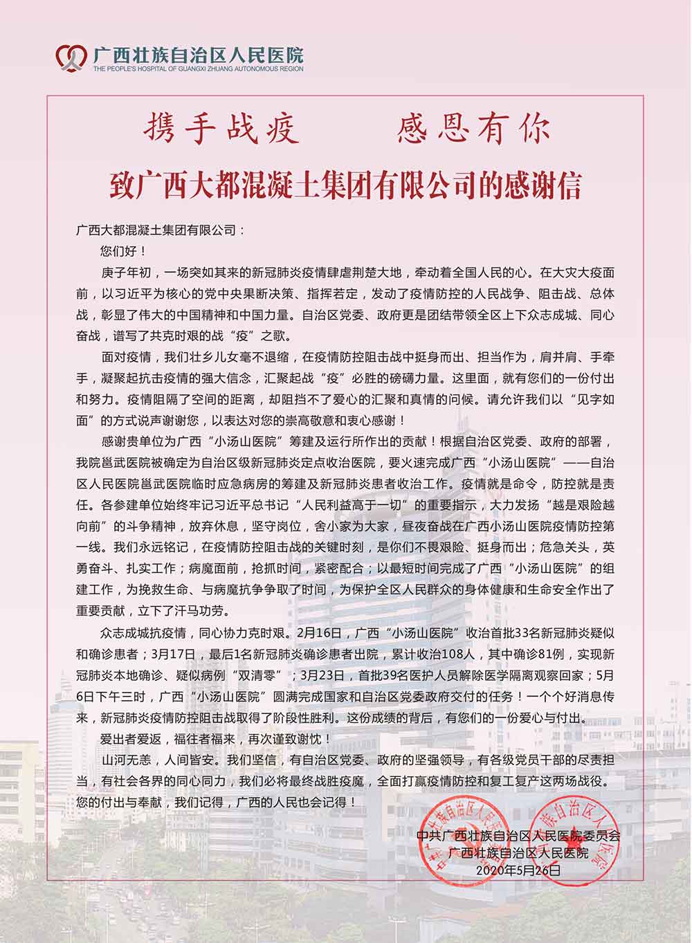 图片新闻 (集团公司·公司收到广西壮族自治区人民医院发来的感谢信)