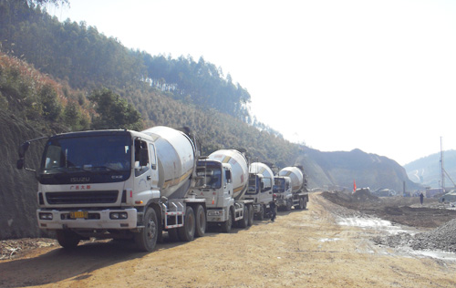 混凝土运输车正在往工地途中